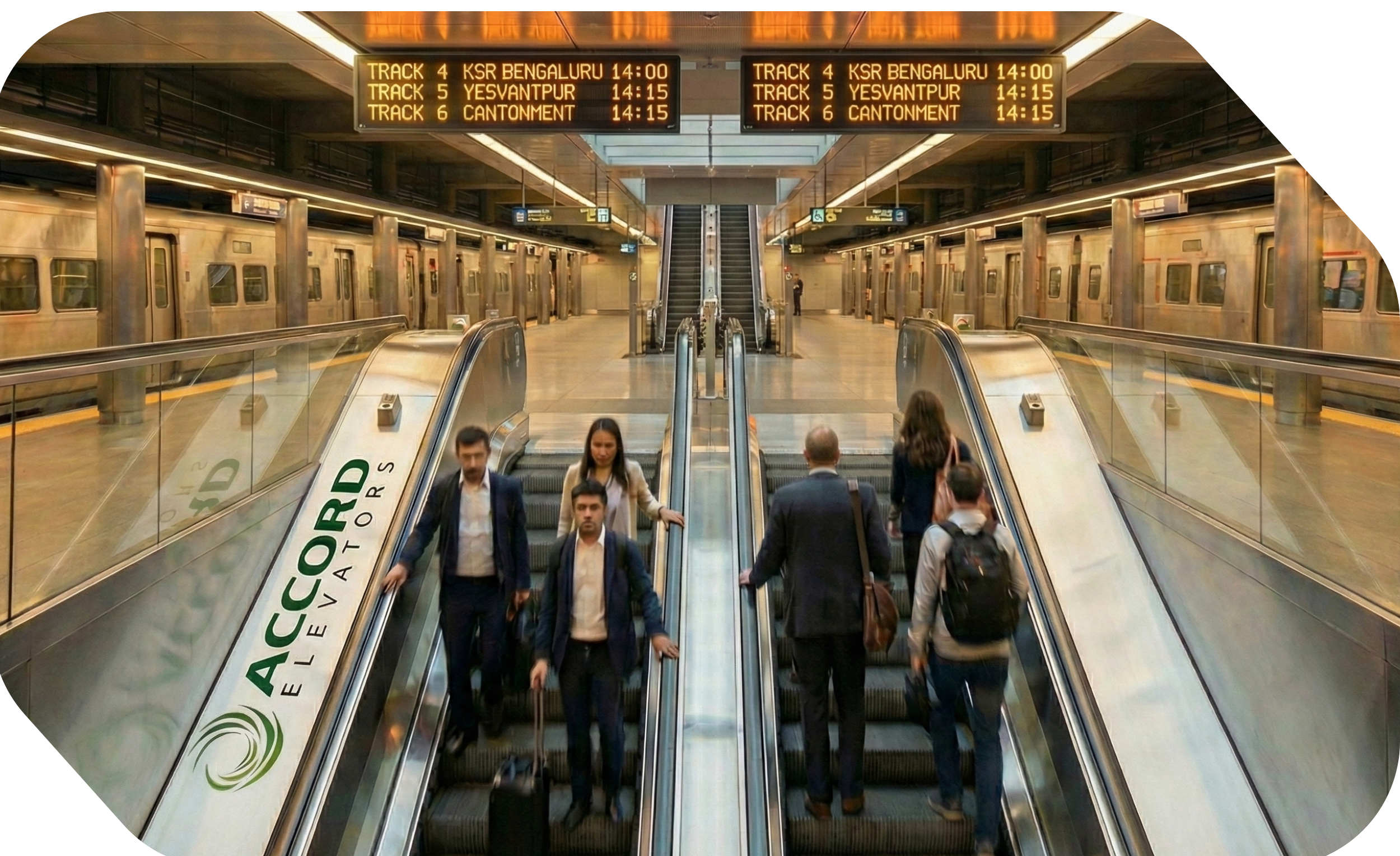 Public Escalators are built for high-volume traffic and round-the-clock usage. Accord’s public-grade escalators are designed with reinforced components, vandal-resistant features, and weather-protected structures to handle intense daily load in transportation hubs and open public areas.